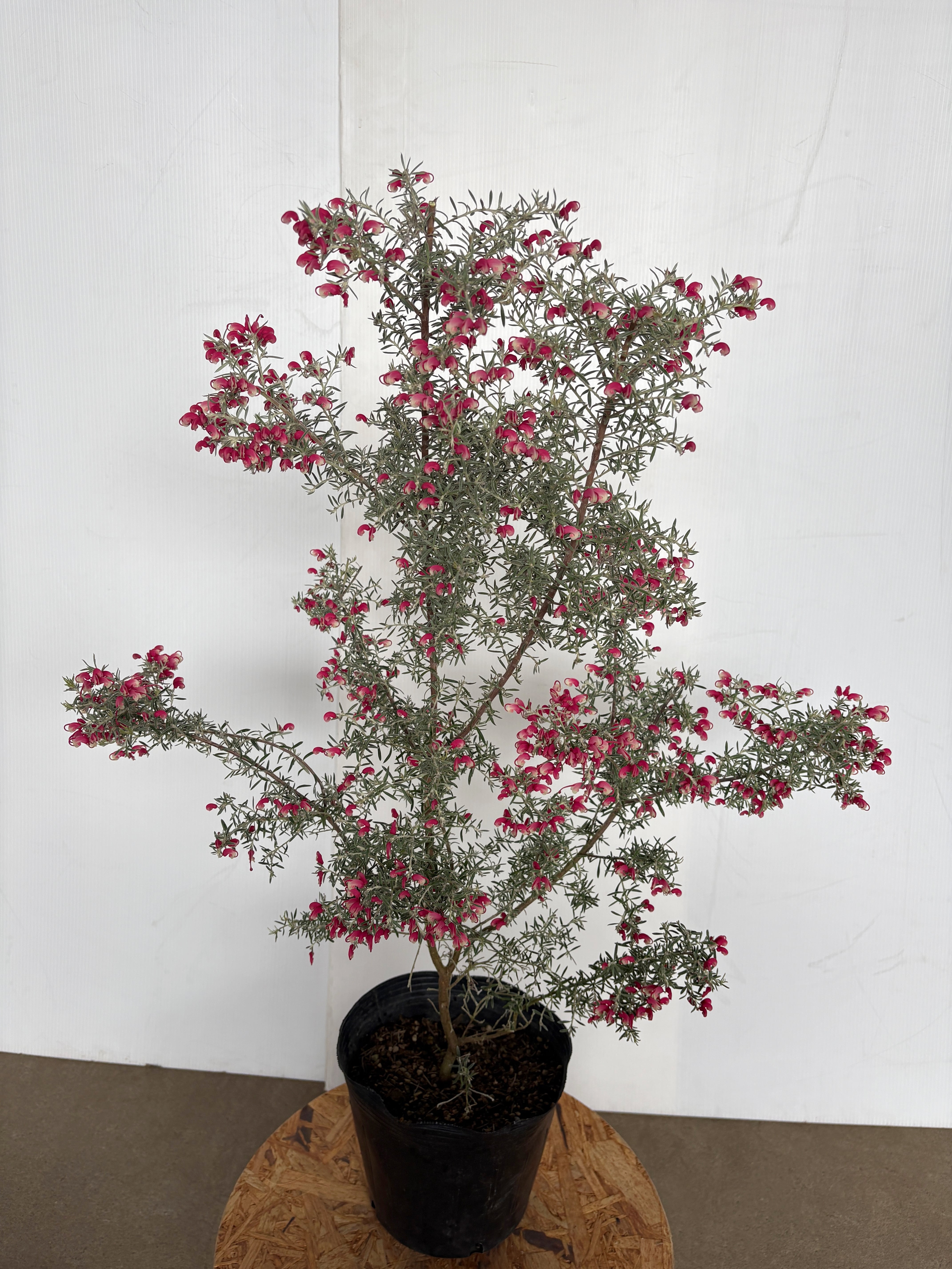 グレビレアの中でシルバーリーフが特徴の品種です。冬期〜春先に赤い花を咲かせ、シルバーリーフのコントラスがとても美しいです。また、葉は切り花としても活用できます。